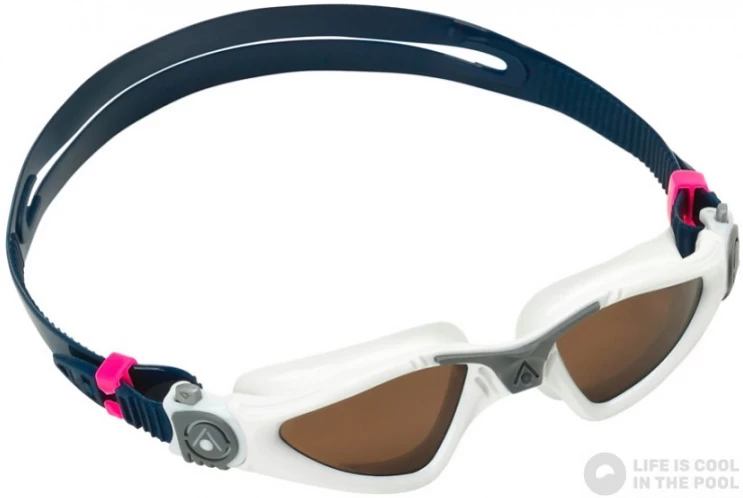 Swimming goggles have doubled straps in the middle. From the sides of the eyepieces there is one strap that is divided in the middle. The advantage of splitting tape is better handling and more comfortable tightening. The doubled straps ensure better hold of the goggles.