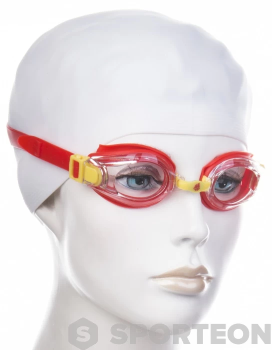 The swimming goggles hold on the head only with the help of one strap. Its simple advantage is the fast deployment and easy handling. This type of simple strap is most commonly used in children’s swimming goggles.