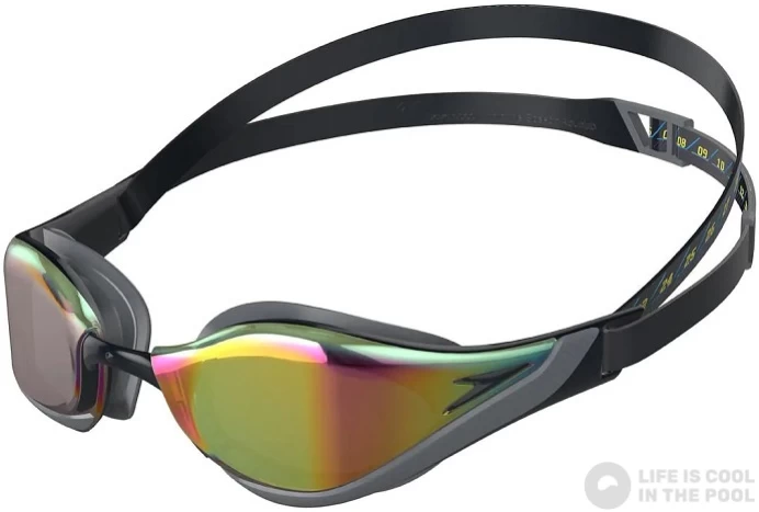 The Speedo Fastskin Pure Focus Mirror glasses have three different sizes of beams, they are beautifully replaced by a slight pull downwards. It’s the easiest and most advanced way I’ve come across with racing goggles. The glasses have “legs” on the side for the better stability of the glasses, highly similar to those of the Arena Cobra Ultra Swipe glasses. I like it very much and I’m very happy with it. The goggles also have an IQ Fit and will fit most swimmers perfectly. This technology takes advantage of taking samples of the faces of a large number of swimmers and creating the shape of the goggles to fit as many swimmers as possible.