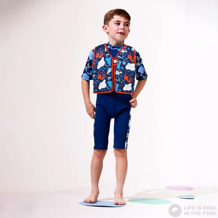Neoprene material. It provides effective protection against cold water.